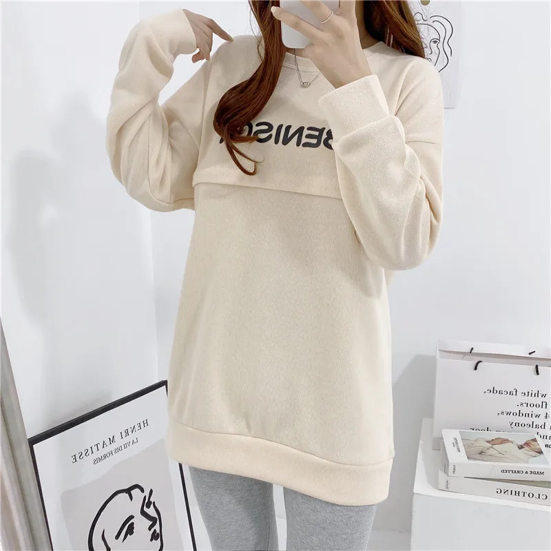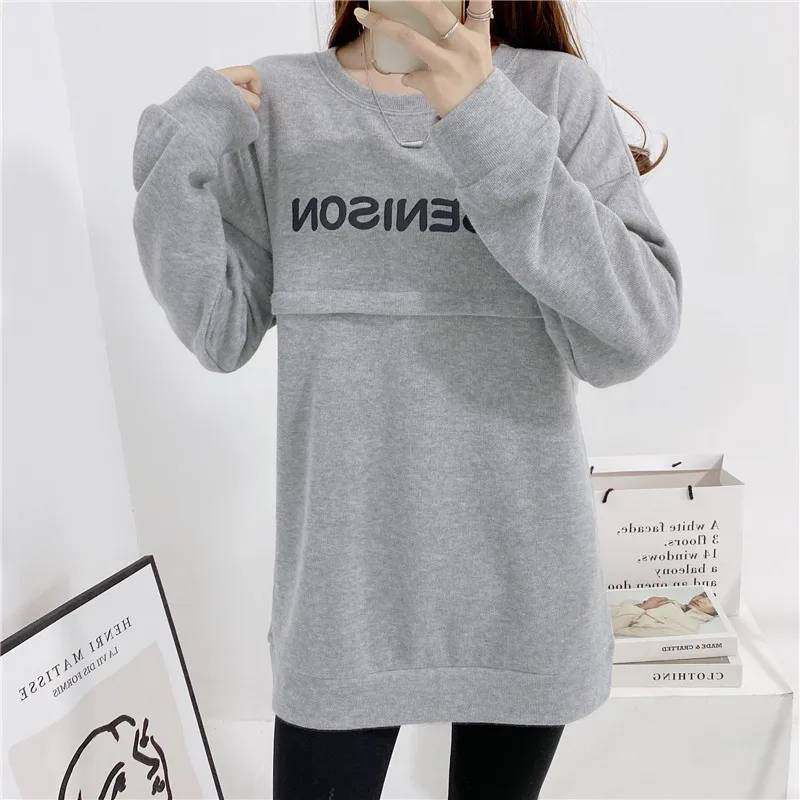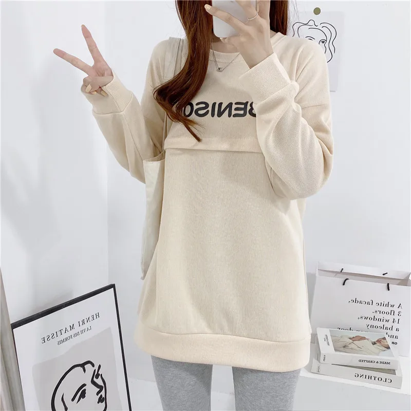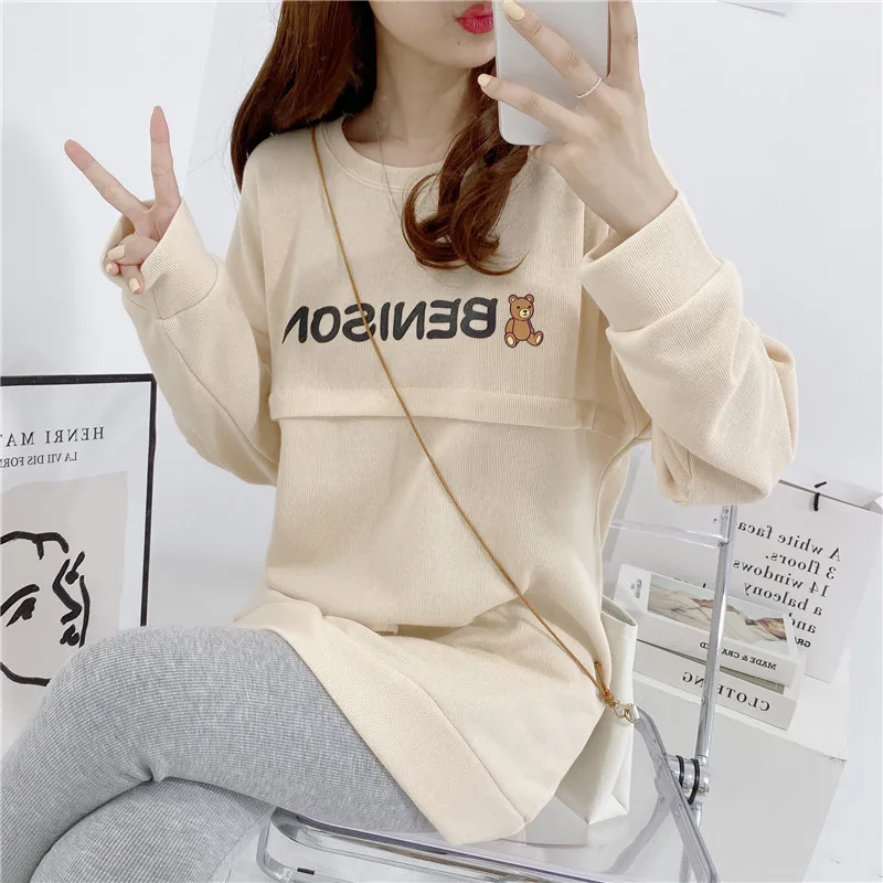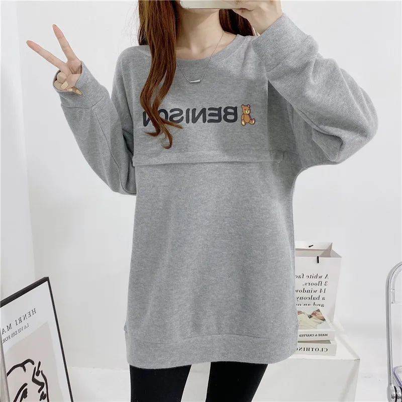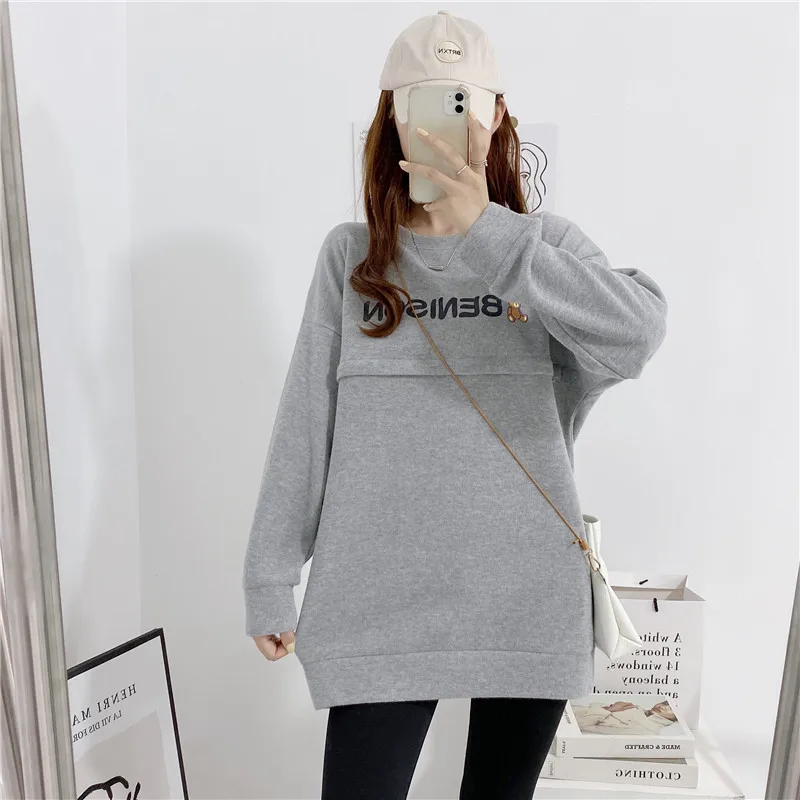 Maternity Nursing Sweatshirt Loose Sweatshirt Pullover Breastfeeding Clothe Autumn Cotton Jacket For Nursing Mothers Maternitty